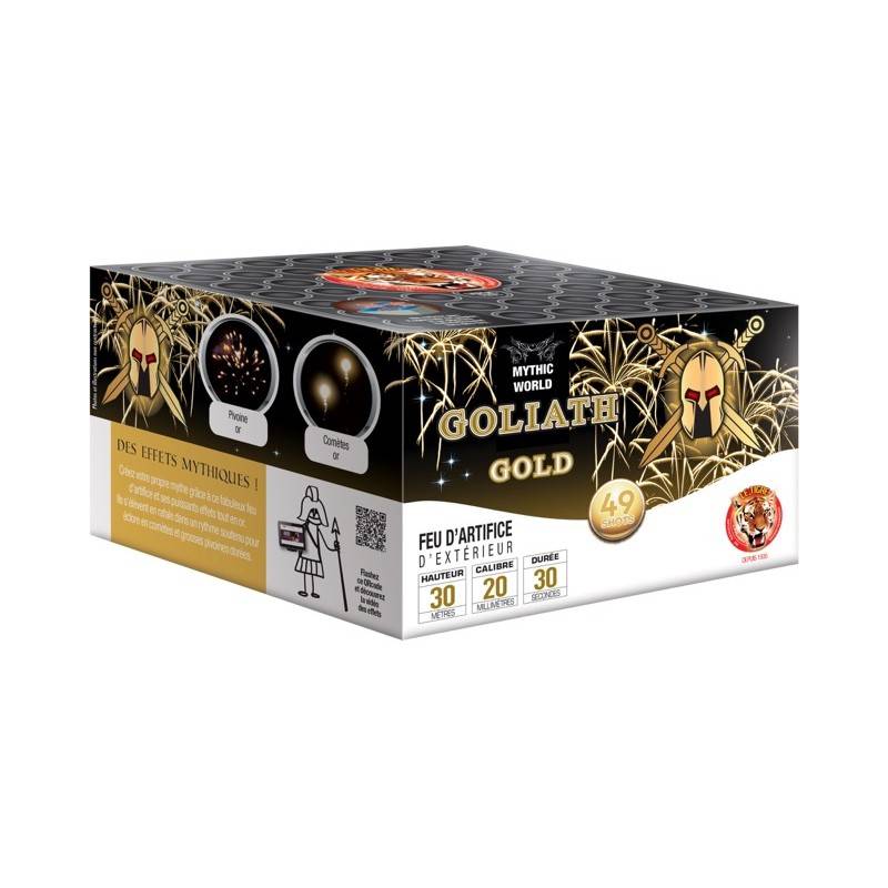 Découvrez notre article Artifices Compact Goliath Gold Mythic World, une succession de pivoines et comètes couleur or gold. L'article est doté d'un puissant bouquet final toujours gold pour mettre des paillettes dans les yeux de vos invités ! N'attendez plus pour profiter de ce spectacle pyrotechnique qui va vous enflammer !