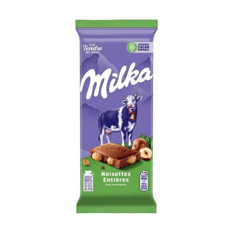 Lot contenant 17 Tablettes Milka Chocolat au lait et Noisette.