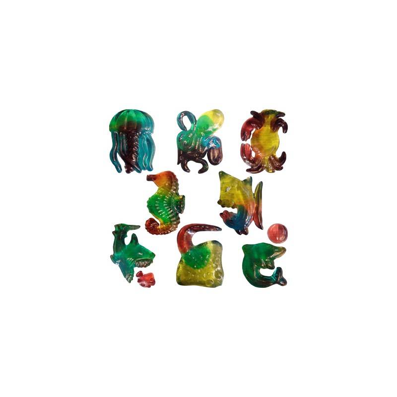 Des bonbons originaux en forme d'animaux marins au goût fruit et de texture gélatineuse.
