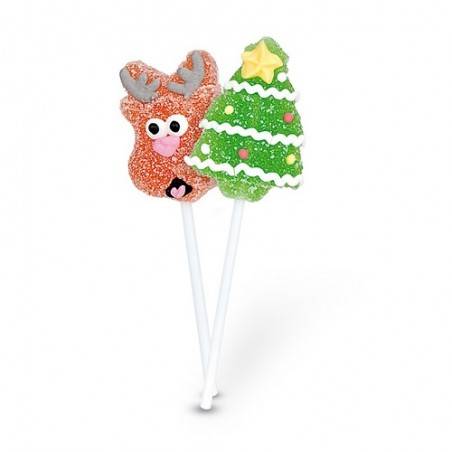 Sucette très originale : mini sucettes gélifiées en forme de décoration de noël. 4 modèles : sucettes cerf, sucettes bonhomme de neige, sucettes sapin de noël et sucettes père noël.