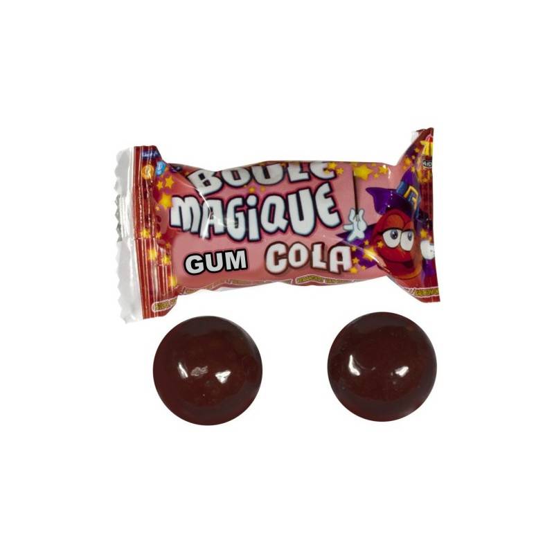La boule magique Cola, change de couleur et de goût. Présence d'un délicieux bubble gum au centre.