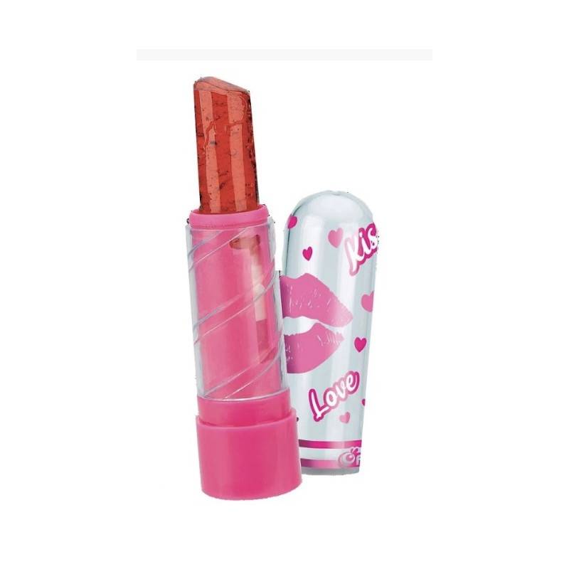 Une délicieuse sucette présentée dans un support représentant un rouge à lèvres.