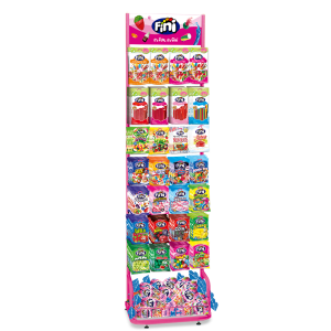 Présentoir à bonbons Fini en métal. Concu pour loger sur une face 28 références de sachets Fini 90g.