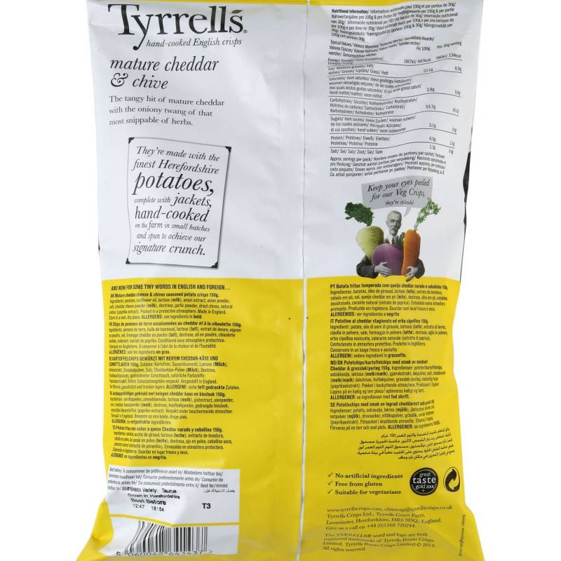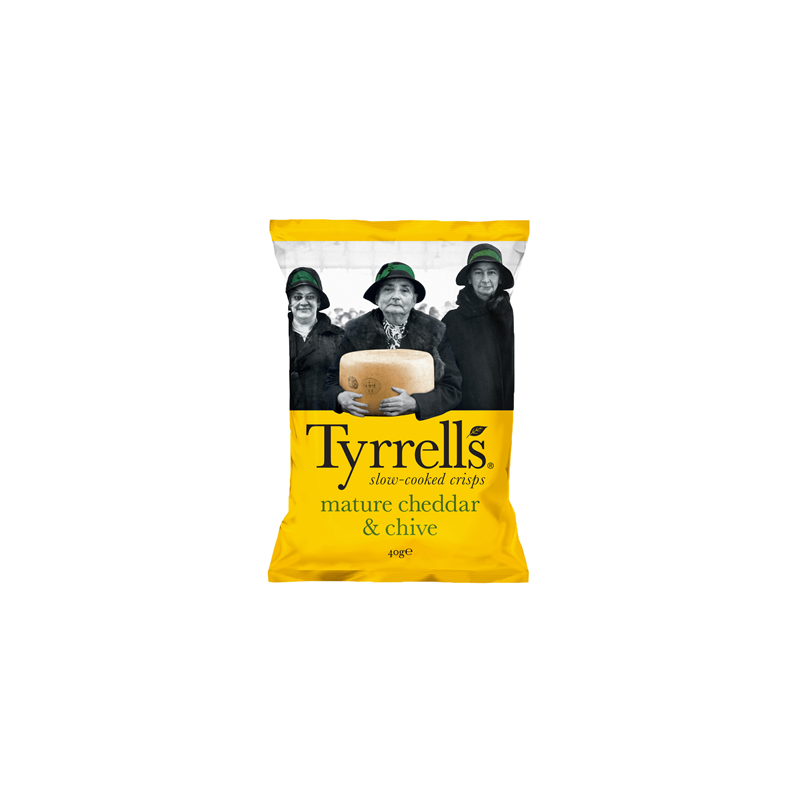 Découvrez ce format compact et pratique de 40g. 18 paquets de chips Tyrrells Cheddar Ciboulette fabriquées avec des pommes de terre de qualités supérieures. Assaisonnée au cheddar et à la ciboulette, les chips Tyrrells Cheddar Ciboulette 40G séduisent par leur saveur unique et leur succès indiscutable. Un goût dément, une texture croquante, un look à la fois original et tendance, et un prix avantageux... le triomphe est assuré !