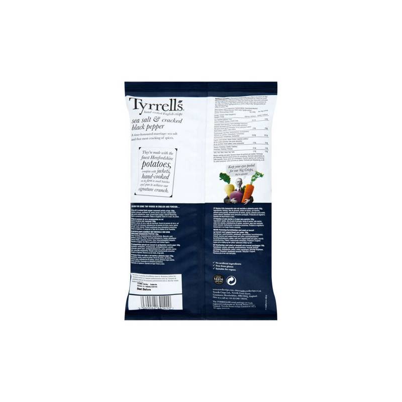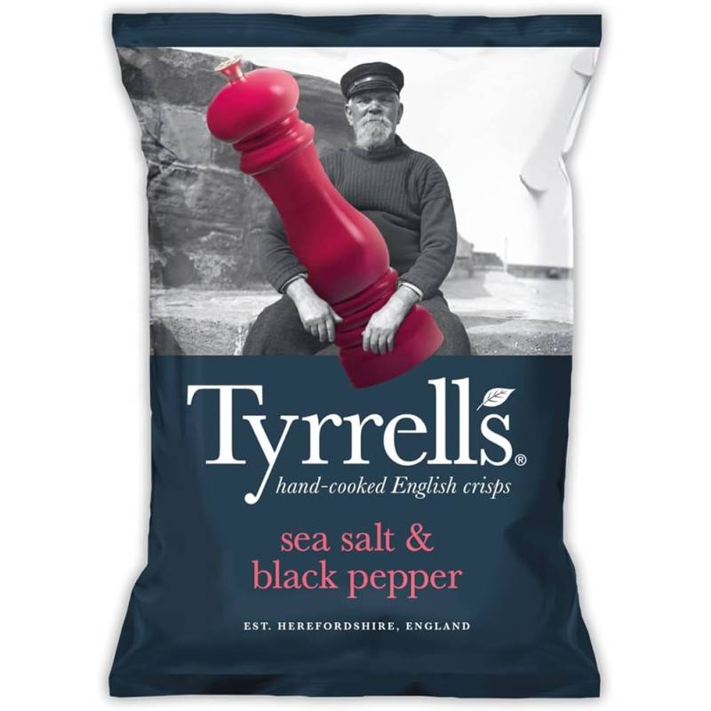 Découvrez ce format compact et pratique de 40g. 18 paquets de délicieuses chips Tyrrells au sel de mer et au poivre noir fabriquées avec des pommes de terre de qualité supérieure. Ce mélange de saveur unique sait séduire les consommateurs de chips croustillantes et croquantes. Un goût dément, une texture croquante, un look à la fois original et tendance, et un prix avantageux... le triomphe est assuré !
